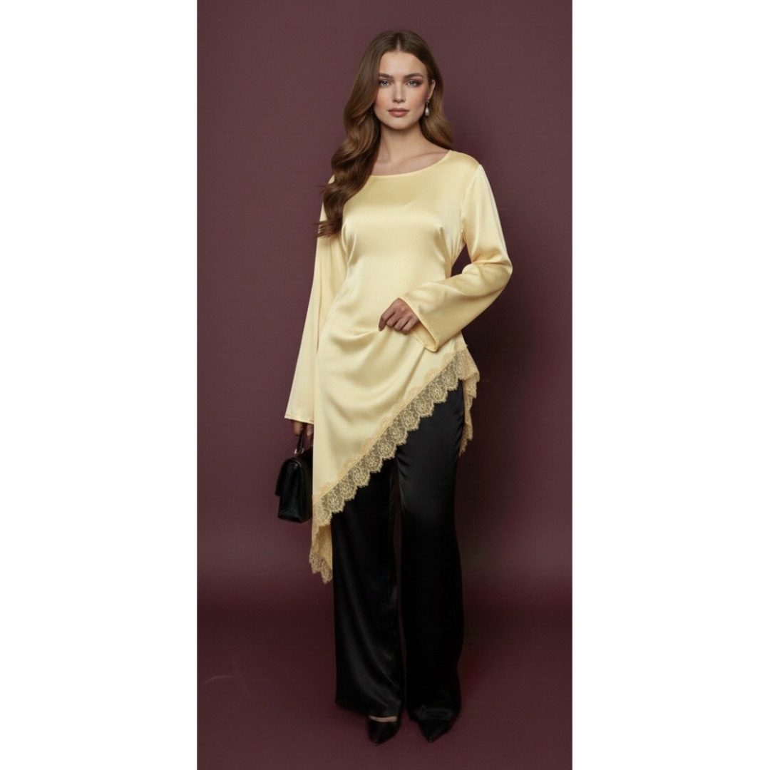 Asymmetrisk Klänning/Lång Topp med snörning med spets Ljusgul Onesize
