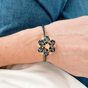 Dusty Blue Gold Cuff Bracelet – Button Base