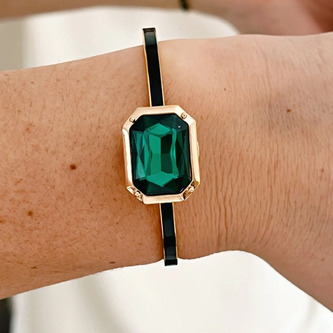 Nea Emerald Green Crystal Rectangle Buttom Charm Gold 1-p