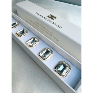 Emma White Crystal Rectangle Buttom Charm Gold 1-p