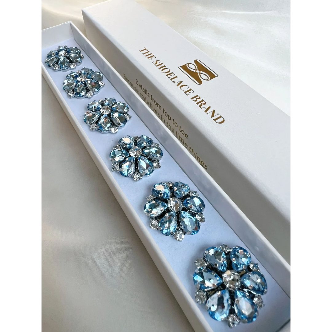 Hollie Light Blue & White Flower Buttom Charm Silver 1-p