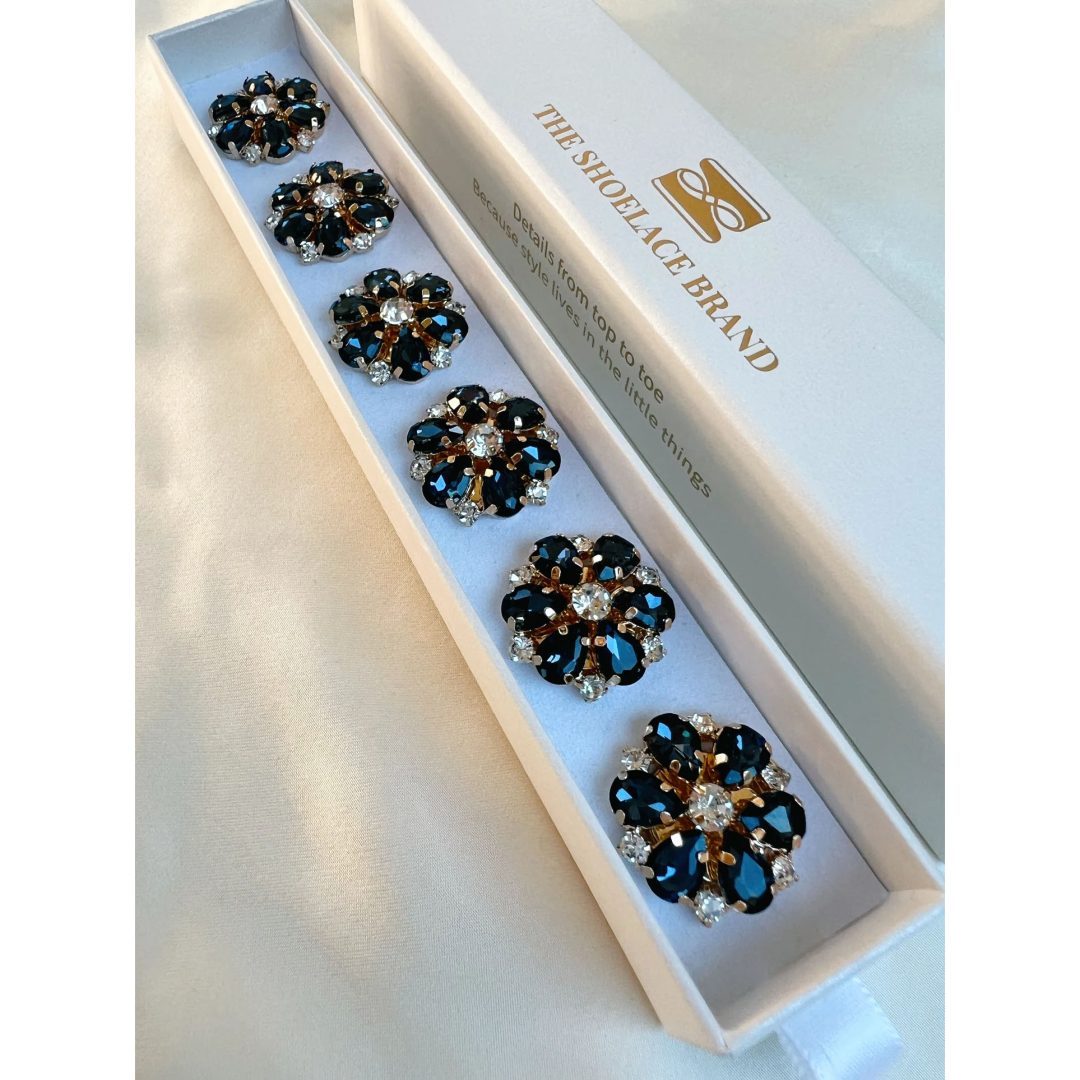 Isabelle Navy & White Flower Buttom Charm Gold 1-p