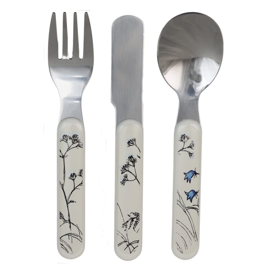 Silikontallrik med bestick Blue Garden