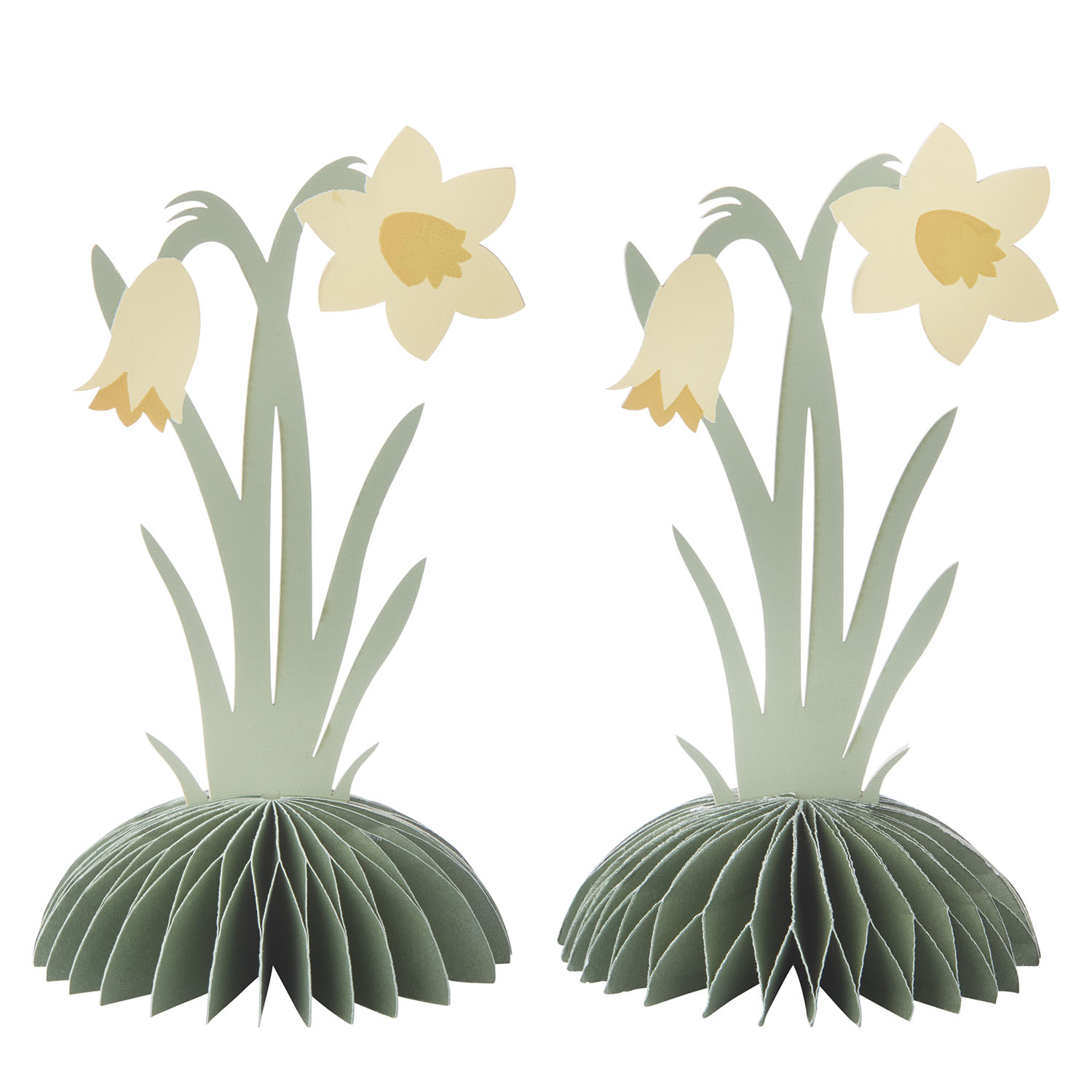 Set med 2 stående påsklilja-pappersfigurer med en charmig bas.