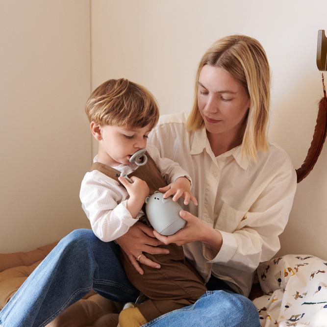 En praktisk nattlampa som är hängande och som gör barnet trygg om natten. Den bärbara och lätta nattlampan kan hängas i barnrummet eller enkelt bäras från sovrummet till hallen eller badrummet på natten.
