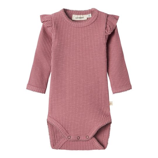 En söt body i ekologisk bomull. Vit och blårutigt mönster med söta volanger.