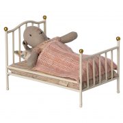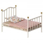 Låt dina Maileg-vänner sova i vintage-sängen i metall. Den levereras med en madrass och kudde i våra vackra Maileg -tryckta tyger. Ovanpå kommer en stickad filt att hålla de små vännerna varma. Den passar perfekt till de mindre mössen.