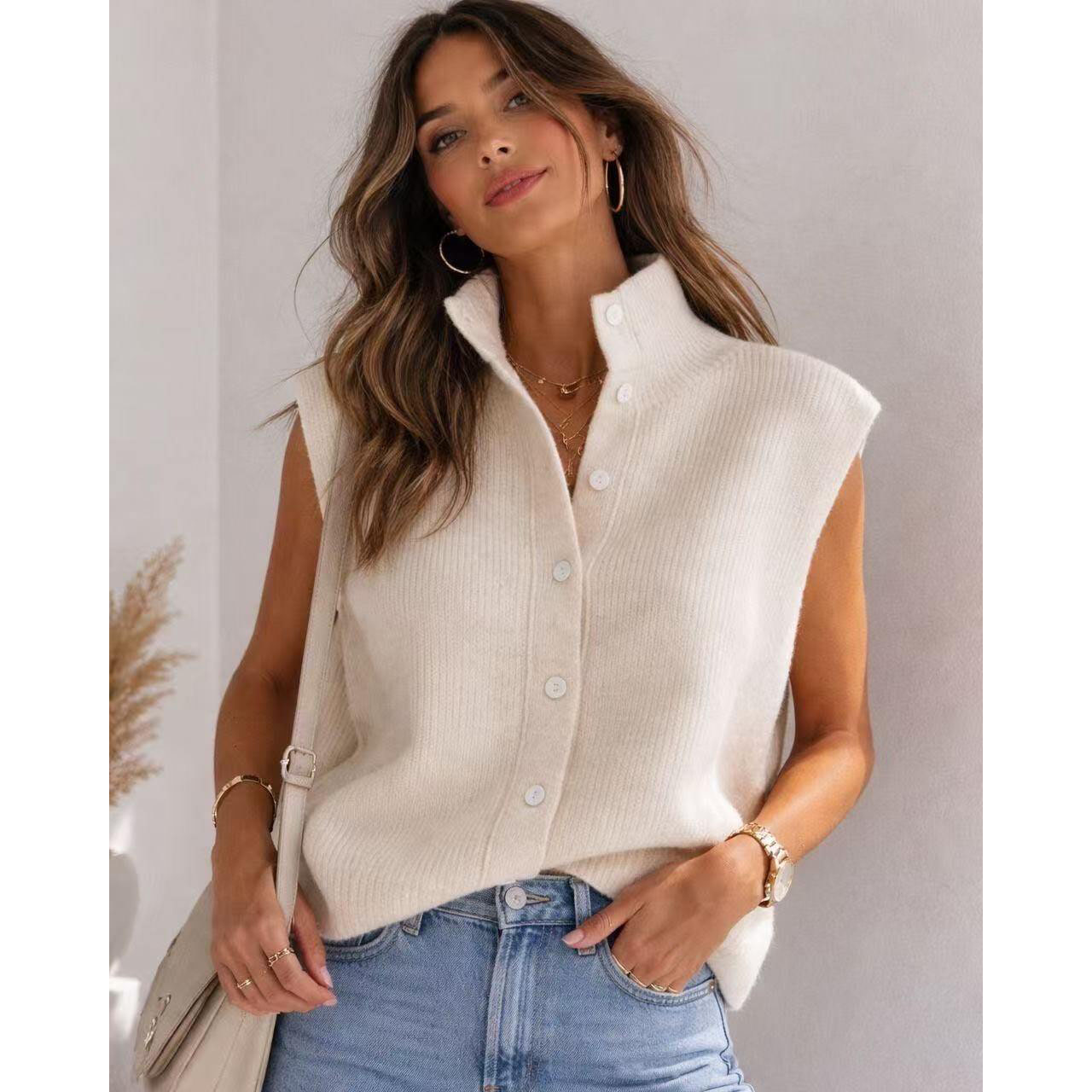 Mjukstickad Väst Cream S/M