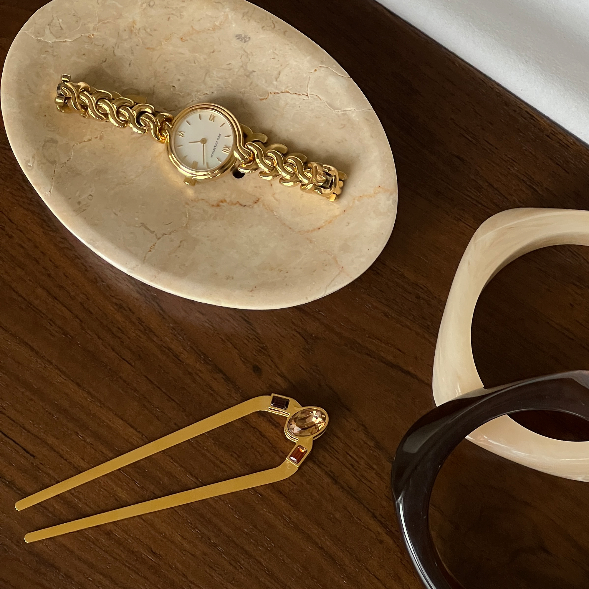 Denna hårnål är lätt att matcha med både vardagskläder och mer uppklädda outfits. Oavsett om du stylar håret inför jobbet, en avslappnad dag eller ett speciellt tillfälle, hjälper denna accessoar till att skapa en stilren look. Den böjda formen ger ett bra grepp och håller håret på plats hela dagen utan att kännas obekvämt.Dess storlek och form gör den anpassad för många olika hårtyper och längder. French Hair Pin Brown är tillverkad av vattentålig 18k guld PVD-plätering och mäter 2,7 x 10 cm.Den är också en genomtänkt detalj om du letar efter en present eller vill komplettera din accessoarsamling med en enkel men funktionell håraccessoar.