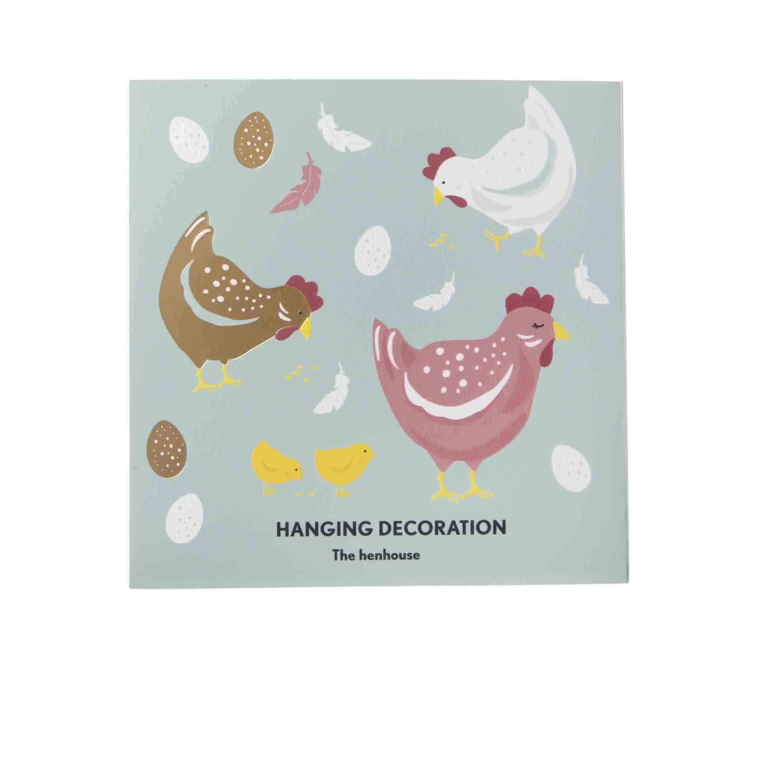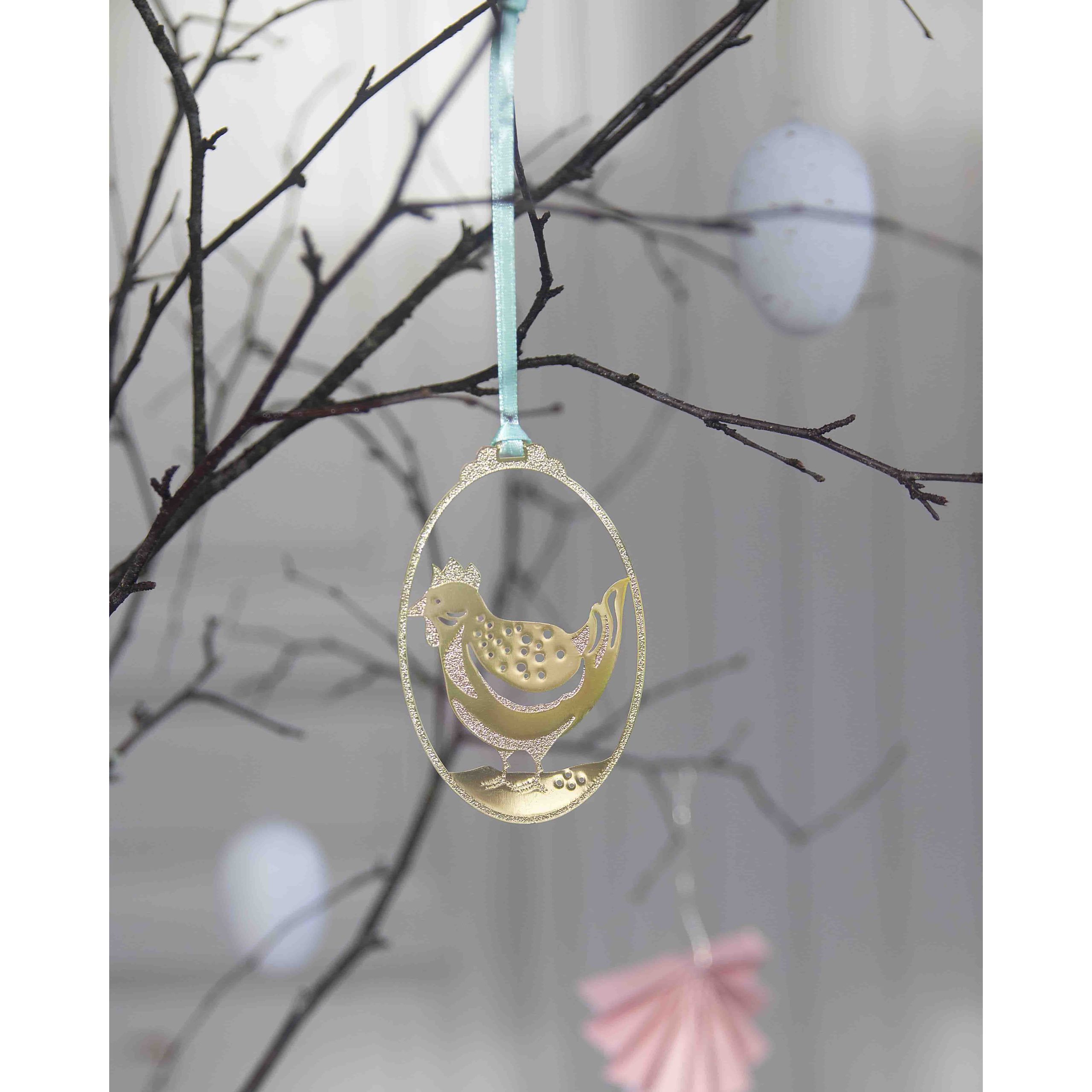 Dekorera hemmet i påsk och vår med detta charmiga äggformade hänge, prytt med en stilfull höna. En vacker detalj som sprider vårkänsla och påskstämning – perfekt att hänga i fönstret, på dörren eller i påskriset.