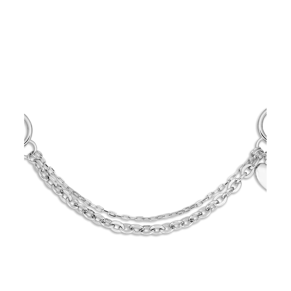 Kedja med slät hjärta är en elegant väskberlock som kombinerar ett klassiskt och modernt utseende. Den dubbla silverkedjan skapar en snygg kontrast mellan fina och starkare länkar, medan det lilla plasthjärtat ger en diskret och feminin touch.