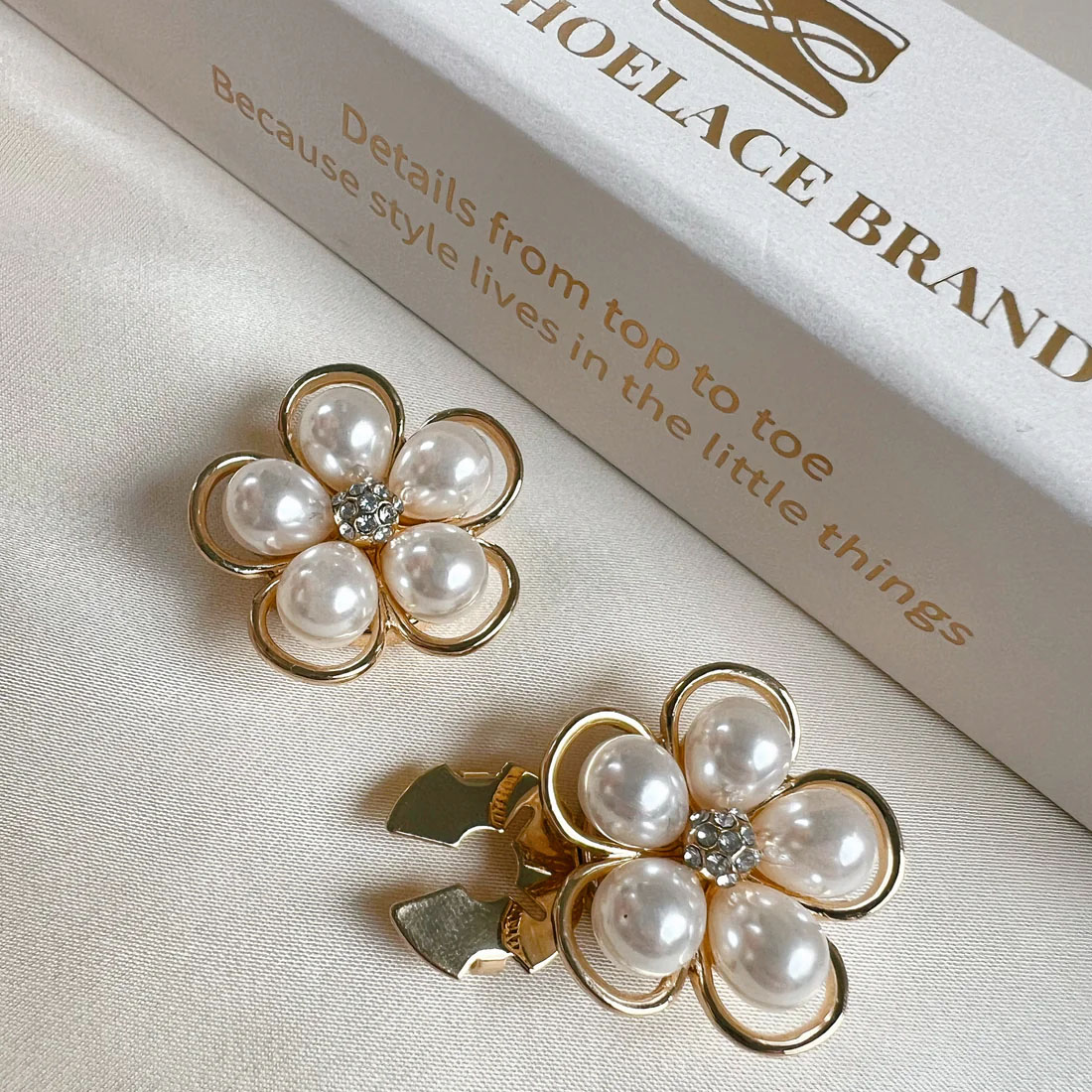 Felica Gold Framed Pearl Flower Buttom Charm Gold 1-p