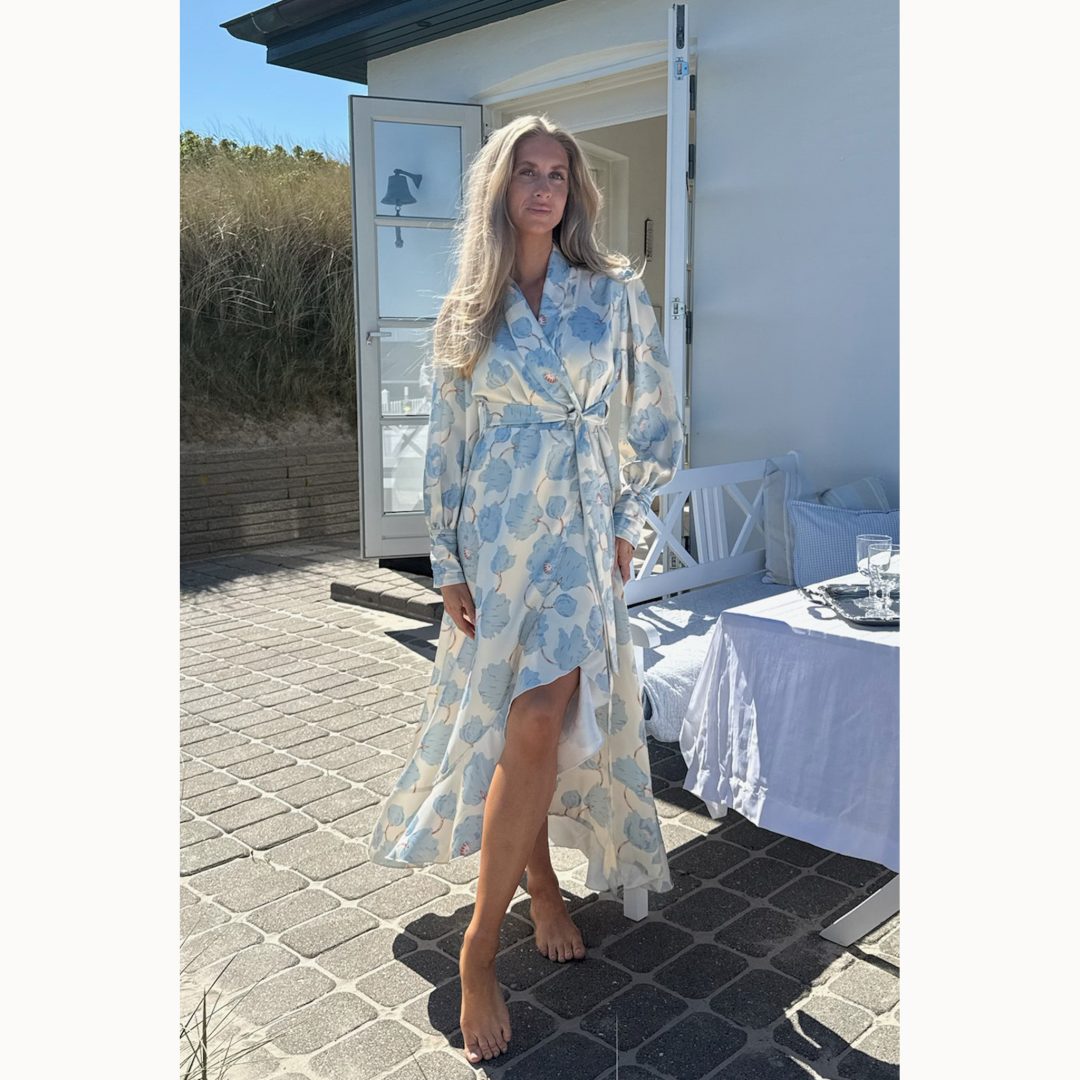 SigneIC Long Wrap Dress – Blue Peony Bloom