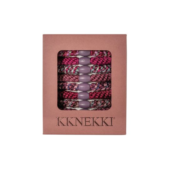 Kknekki är världens bästa hårsnoddar! Kknekki hårsnodd består av många smala resårer som är ihopstickat med massa tunna trådar. Hårsnodden har en rundad plastfog i mitten som inte river eller bryter av hårstråna. Den lilla detaljen gör att hårsnodden blir ännu mer dekorativ. Hårsnodden passar lika bra på handleden som ett armband. Kombinera med flera olika färger och mönster.