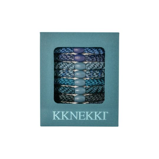 Kknekki är världens bästa hårsnoddar! Kknekki hårsnodd består av många smala resårer som är ihopstickat med massa tunna trådar. Hårsnodden har en rundad plastfog i mitten som inte river eller bryter av hårstråna. Den lilla detaljen gör att hårsnodden blir ännu mer dekorativ. Hårsnodden passar lika bra på handleden som ett armband. Kombinera med flera olika färger och mönster.